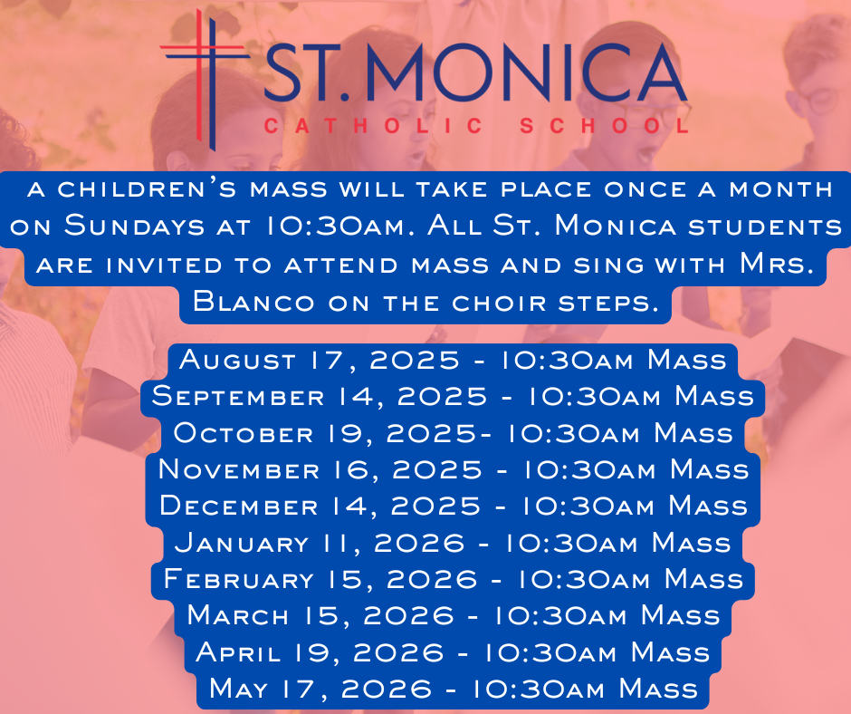 As a Catholic community, we strive to create a Christian educational community committed to high educational standards within the framework of Catholic principles. Our Catholic identity is something that we are very proud to share. Families of all faiths are welcome to share as St. Monica Catholic School (SMS) practices our Catholic Christian values every day.