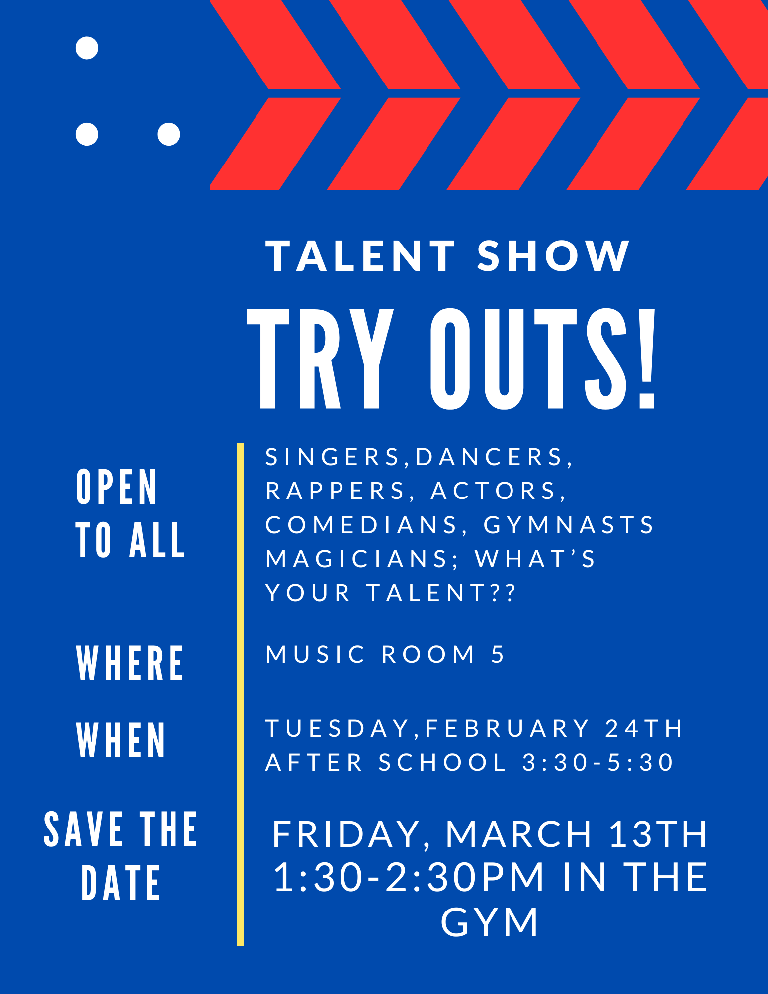 School Uniforms, Chess Club, Talent Show Try-outs