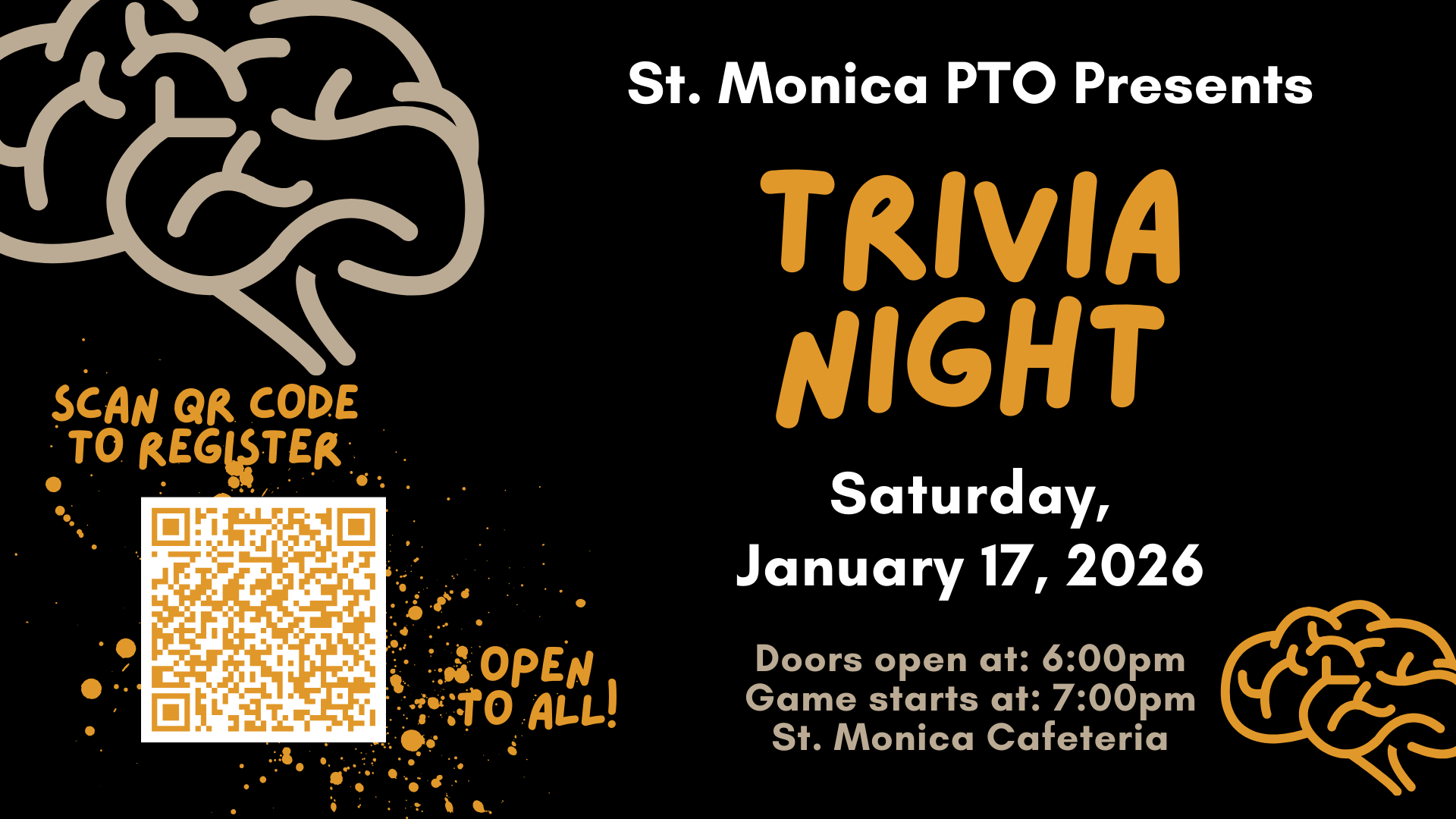 PTO Family Fun Night, Trivia Night, Take Out Tuesday, Christmas Pageant, Chess Club